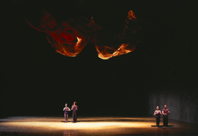 このパフォーマンスは、サイヤール館長(右の男性)が、ティルダ・スウィントンをモデルにして、古典的な方法で、一着のドレスの作り上げていくというもの。パリのメゾン、クロエが協力し、1年前からサイヤール館長はクロエで服作りの基礎を学び、準備をしてきたそうです。まずは、採寸からはじまります。測る位置を観客に知らせてから、上の写真のように、順番に測っていき、作図をして、パターンを作り、トワルに写します。もちろん、すべてを行っている時間はないので、料理番組のように工程ごとに準備してあるものを使って、重要な部分を切り取って見せてくれるのです。服作りの大まかな流れをつかみながら、ときにダイナミックに服作りにストーリーを盛り込んで、そこに心地よく漂わせてくれました。